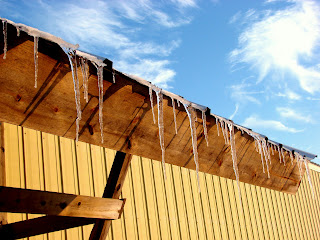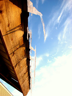 ReplyDeleteI like the first one, the view from inside the barn. The icicles against blue are pretty, too. Nice shots.