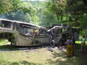 When Nelson and I ran over to the burning camper, Debra just followed, not knowing why we were running to a burning camper like that. We checked the doors where we would have kept our dogs, but when Debra learned there were dogs inside, she immediately thought of the living quarters where SHE keep her dogs. And, since she had been studying windows that morning, she was prepared. Debra just touched the screen and it fell away, and Pee Wee leaped into her arms. She couldn't see the other dog and didn't remember her name. Since I had Corgi on the brain, I knew it was Crickett and so we called for her - a little chubby, so as Debra tried to get the body through and commented that we were running out of time, I tried to push the windows slats a little wider. She pulled the Corgi through and I swear her fur was smoking a little bit. We ran a ways away with the dogs and Nelson told us to turn around - there where Debra had pulled the dogs out, the window was FULLY engulfed in flames.